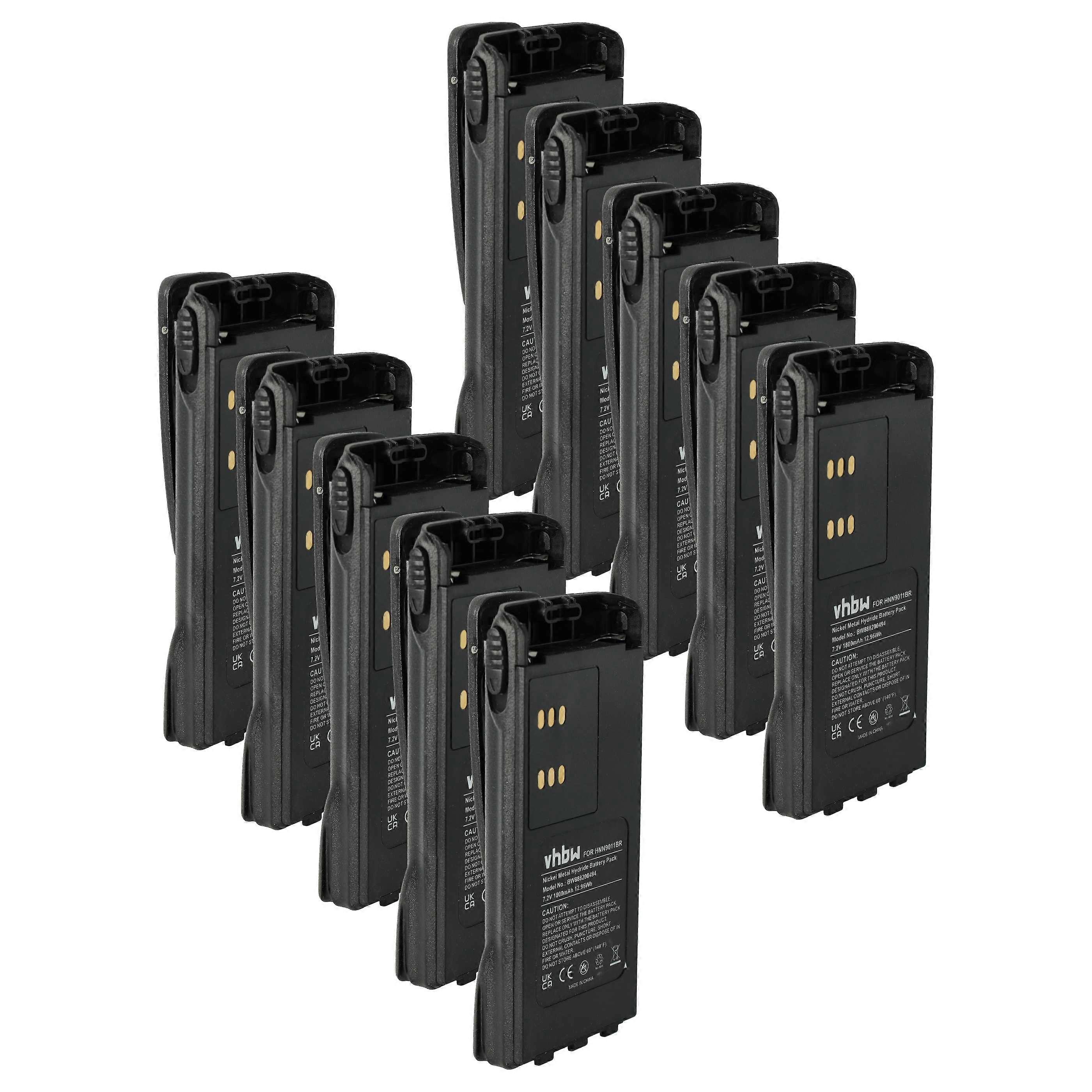 vhbw 10x Akku Ersatz für Motorola HMNN4151, HMNN4154, HNN4001, HMNN4158, HMNN4159 für Funkgerät, Walkie Talkie (1800 mAh, 7,2 V, NiMH) + Gürtelclip