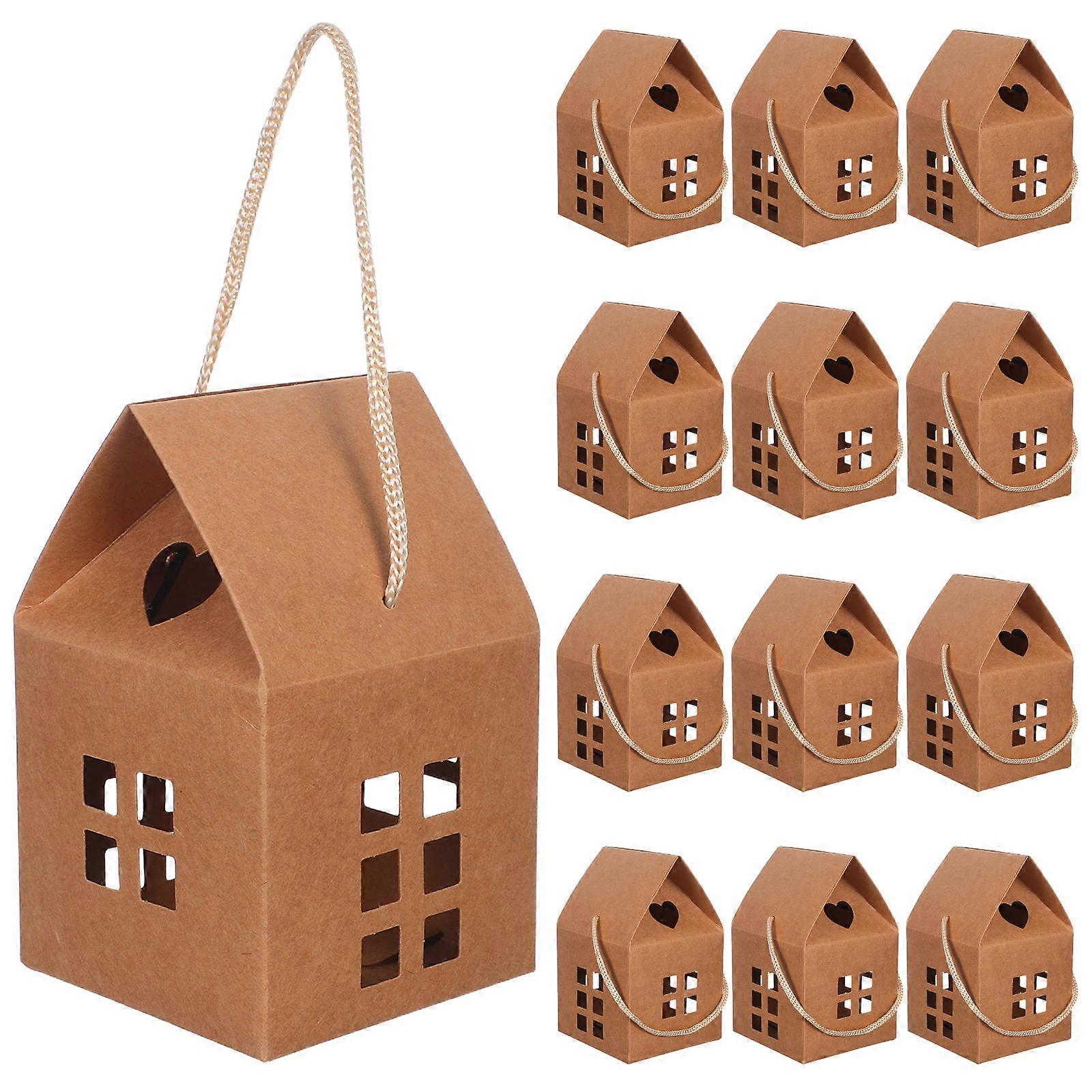 Light Brown Handheld House Shaped Gift Boxes 30 Pcs For Festival Decoration And Storage