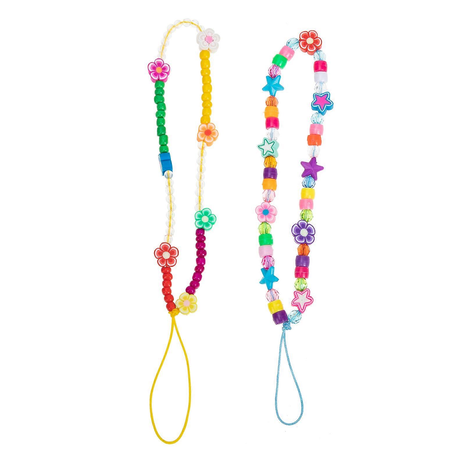 Flower Beaded Phone Lanyards for Decoration with 6Pcs Phone Wrist Straps