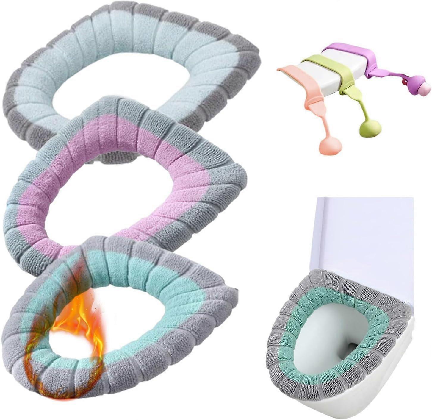Toilet Seat Cushion, Warm Toilet Seat Cover, 3pcs Padded Toilet Seat Cover with Toilet Lid Lifter, W