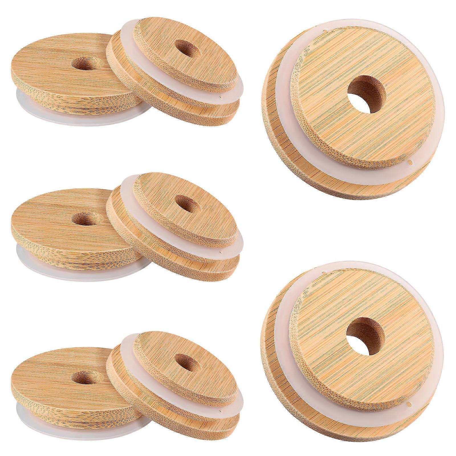 Wide Mouth Jar Lids Bamboo Jar Drinking Lids For Home Use Light Brown Reusable 24Pcs